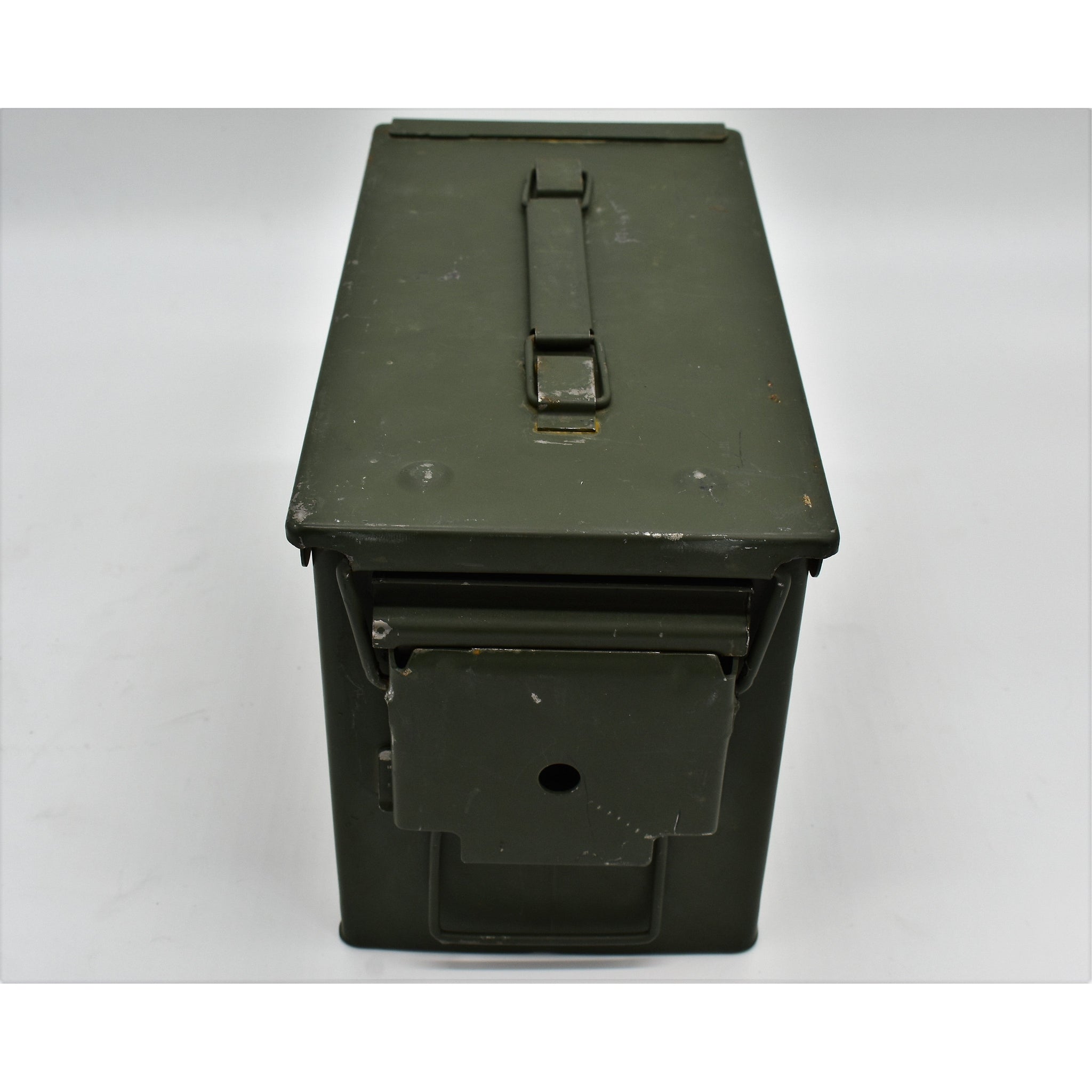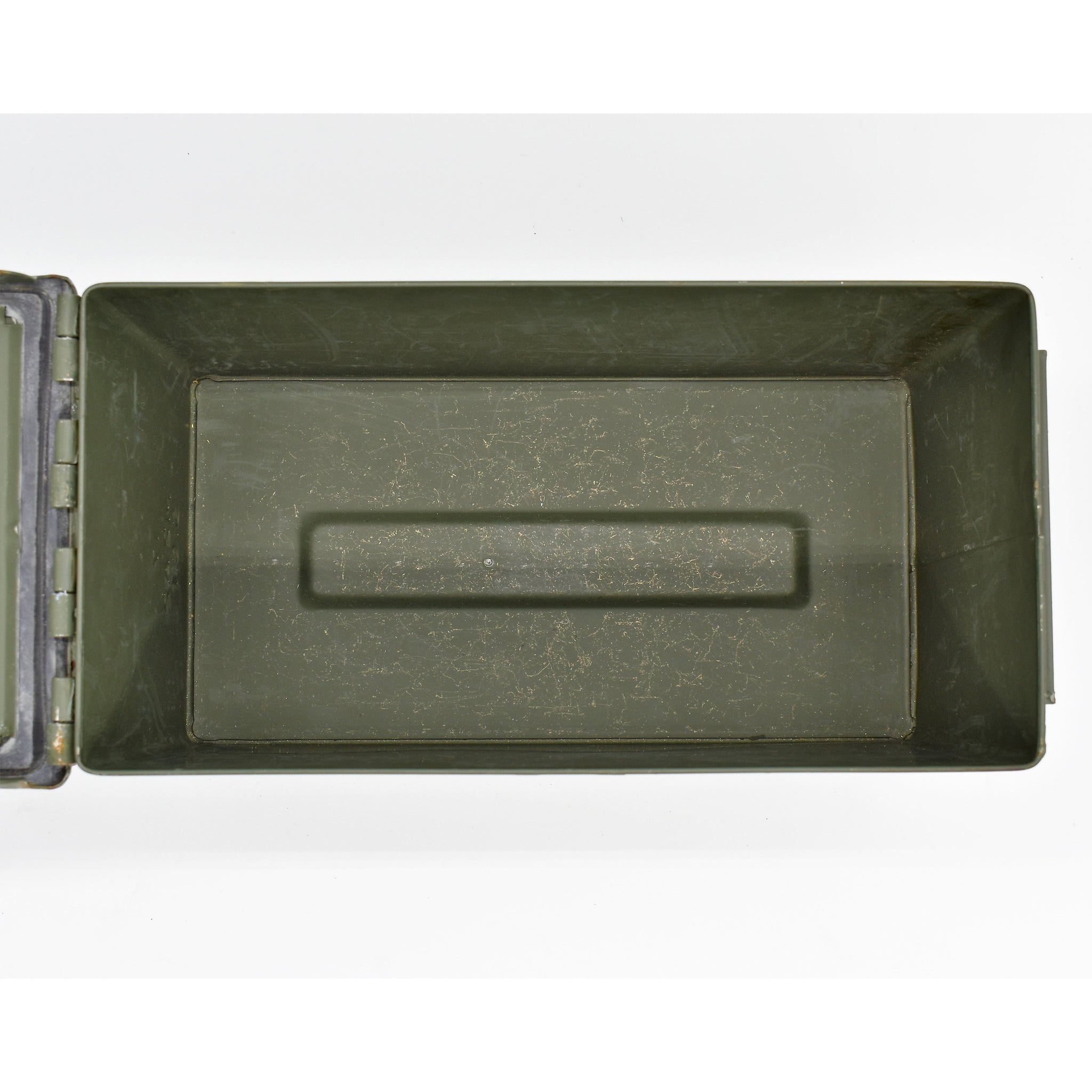 The .50 Caliber Ammo Can makes an excellent small dry box for repair kits, personal gear and first aid supplies or your ammo. They're rugged, waterproof and built to last. Constructed of heavy gauge steel for bombproof protection. The rubber lid gasket ensures a watertight seal. Latches securely to keep contents safe. It has a sturdy folding carry handle and a metal loop for attaching with a carabiner or strap. Inside dimensions are 10''L x 3 1/2''W x 7''H. Good condition.